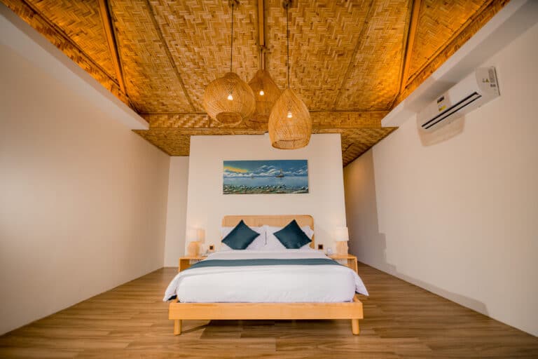 Escape to our one-bedroom Deluxe Ocean Villa, a tranquil retreat for couples seeking a romantic beachfront getaway. The villa features a comfortable Queen bed, offering a restful night’s sleep for two guests. Wake up to the breathtaking beach view right from your villa, creating unforgettable moments as you savor the beauty of Camiguin. Indulge in a complimentary breakfast to start your day off right, while enjoying the soothing sound of the waves and the gentle ocean breeze. With its serene ambiance and picturesque location, our Deluxe Ocean Villa at Nadhibar Resort is the perfect sanctuary for couples seeking a peaceful and romantic escape in Camiguin.